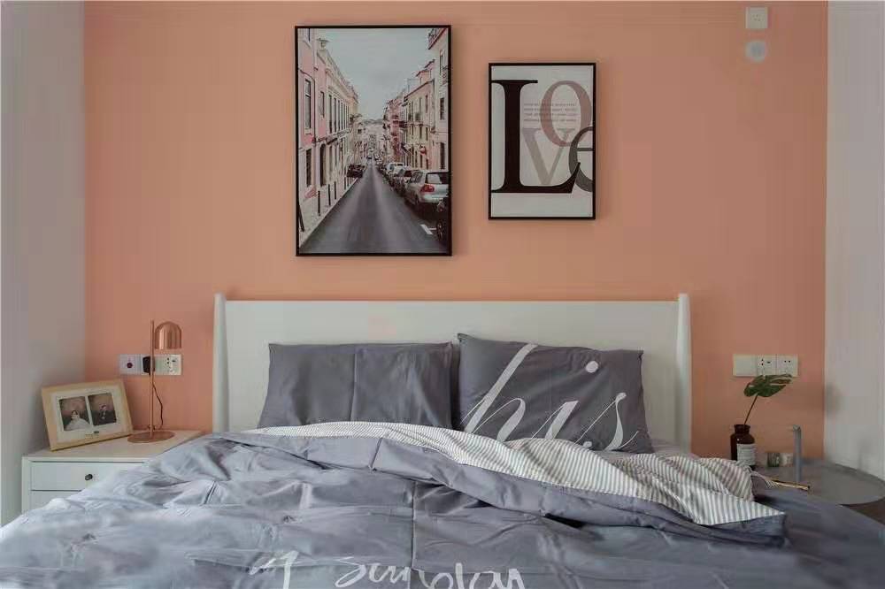 床头背景墙的装饰画具有视觉延伸的效果,增强了空间层次感。